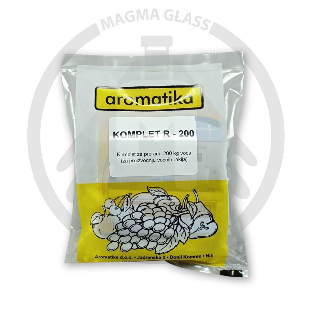 Enološki komplet za preradu 200kg voća sadrži univerzalni voćni kvasac Wineferm G, hranu za kvsace Enovit i enzim Endozym Cultivar